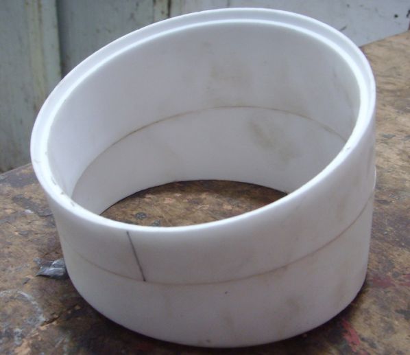 圖(1)蝦米節(jié)氧化鋁陶瓷彎頭是用直管對接焊好后內襯陶瓷片